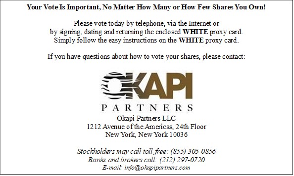 PLEASE VOTE YOUR WHITE PROXY CARD TODAY.