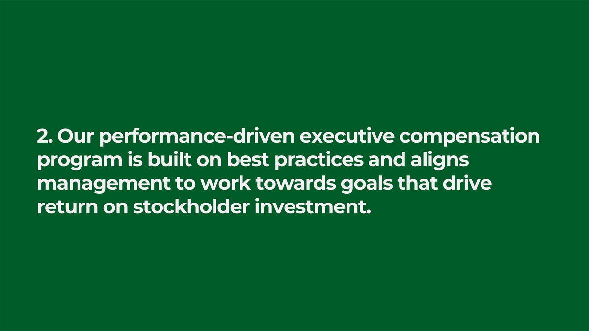 2. Our performance-driven executive compensation program is built on best practices and aligns management to work towards goals that drive return on stockholder investment.
