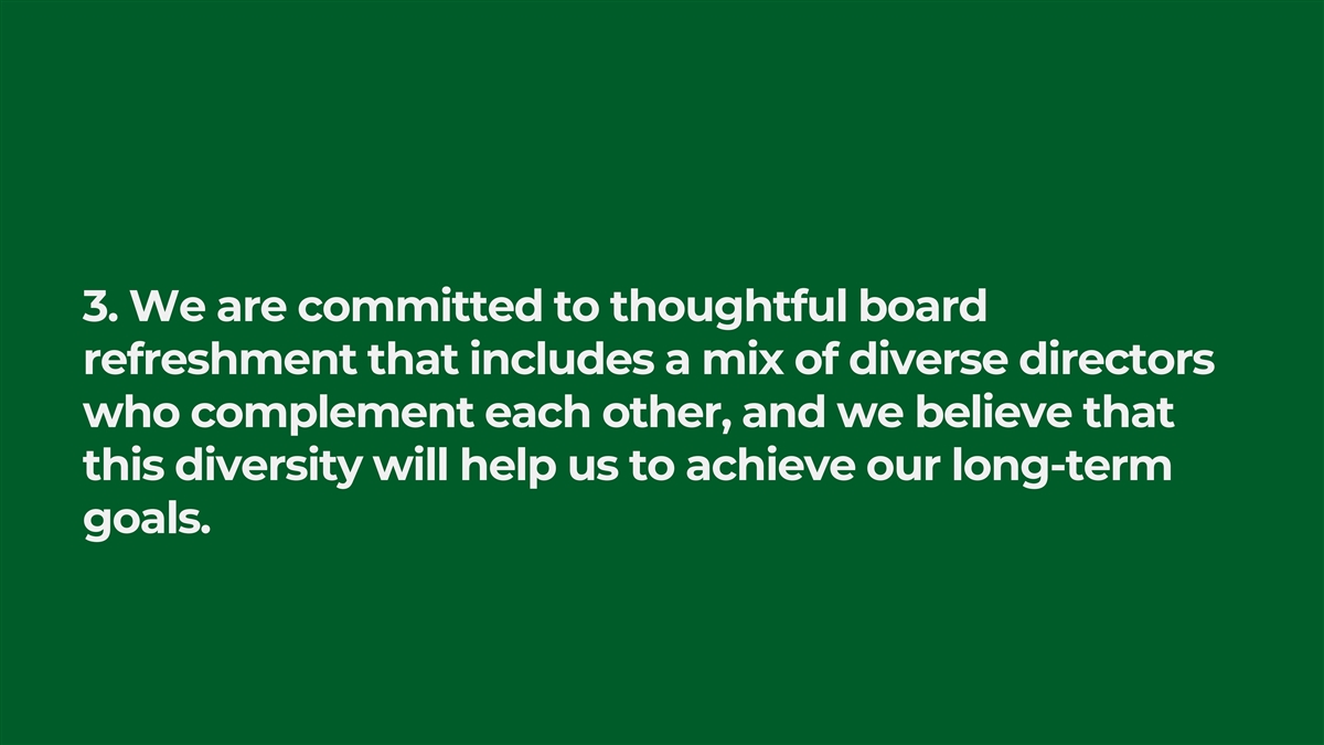 3. We are committed to thoughtful board refreshment that includes a mix of diverse directors who complement each other, and we believe that this diversity will help us to achieve our long-term goals.