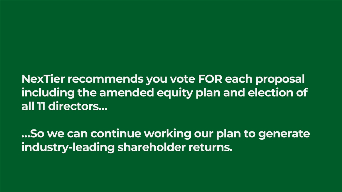 NexTier recommends you vote FOR each proposal including the amended equity plan and election of all 11 directors… …So we can continue working our plan to generate industry-leading shareholder returns.