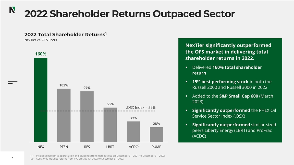 1. NexTier delivered industry-leading financial results in 2022 and is committed to returning capital to shareholders.