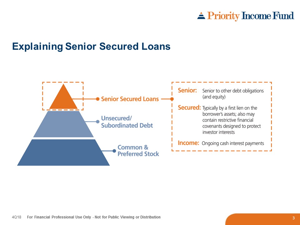 3 4Q18 For Financial Professional Use Only - Not for Public Viewing or Distribution Explaining Senior Secured Loans