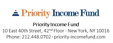 Priority is a registered closed-end fund that was created to acquire and grow an investment portfolio primarily consisting of senior secured loans or pools of senior secured loans known as CLOs. Such loans will generally have a floating interest rate and include a first lien on the assets of the respective borrowers, which typically are private and public companies based in the United States. For more information, visit www.priority-incomefund.com.