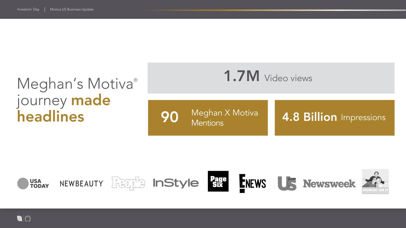 Meghan’s Motiva® journey made headlines 90 Meghan X Motiva Mentions Impressions4.8 Billion 1.7M Video views Motiva US Business UpdateInvestors’ Day