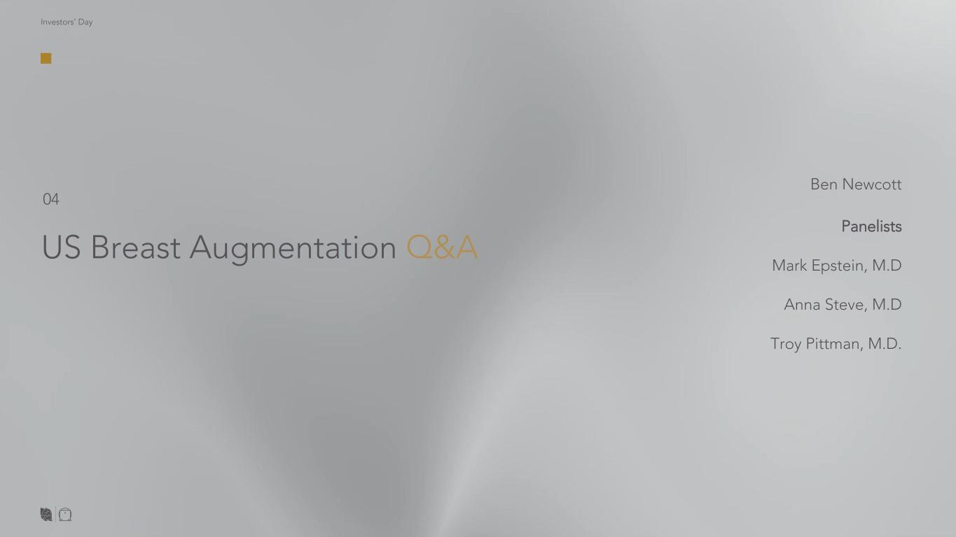 Investors’ Day US Breast Augmentation Q&A 04 Ben Newcott Panelists Mark Epstein, M.D Anna Steve, M.D Troy Pittman, M.D.
