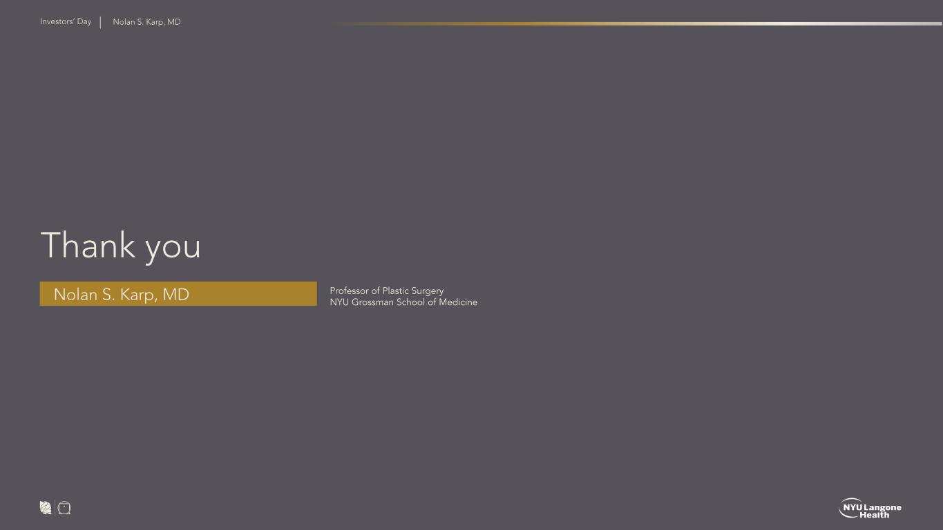 Thank you Professor of Plastic Surgery NYU Grossman School of MedicineNolan S. Karp, MD Investors’ Day Nolan S. Karp, MD