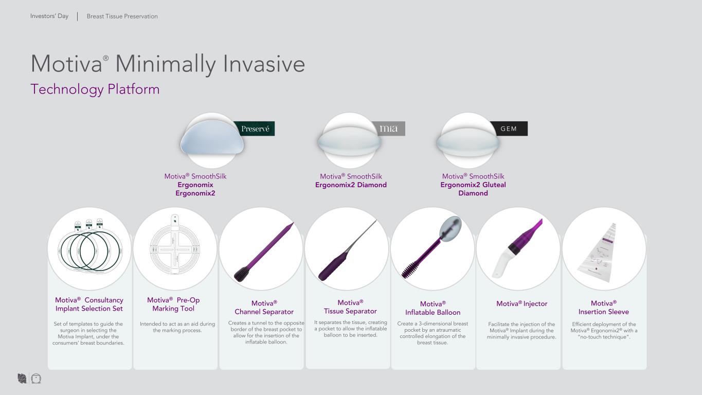 Motiva Minimally Invasive Technology Platform Investors’ Day The New Aesthetics Consumer Breast Tissue Preservation For the day-to-day Standardize Gluteal Enhancement Modeling Breast Tissue Preservation