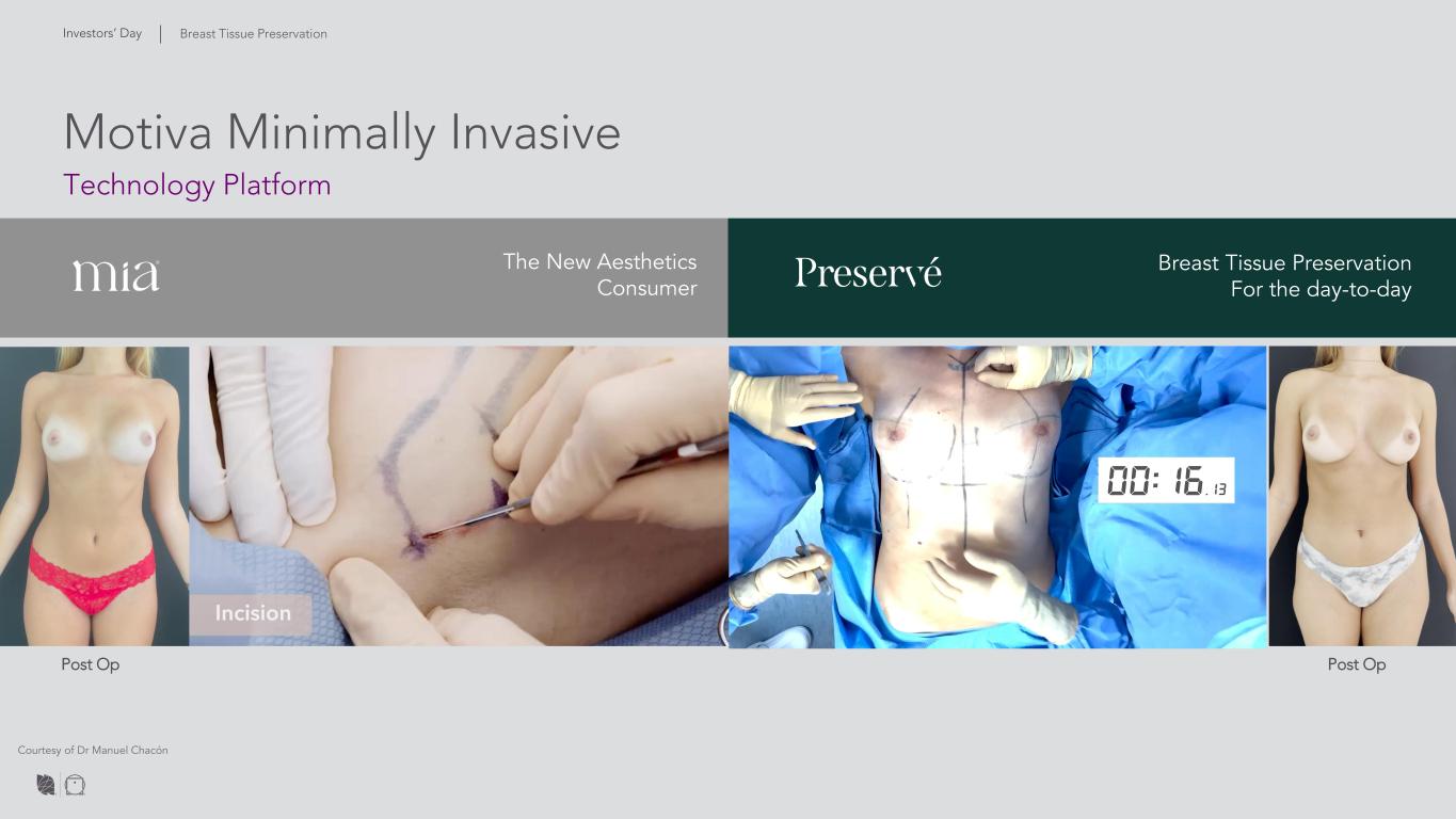 Investors’ Day Motiva Minimally Invasive Technology Platform The New Aesthetics Consumer Breast Tissue Preservation For the day-to-day Post Op Breast Tissue Preservation Courtesy of Dr Manuel Chacón Post Op