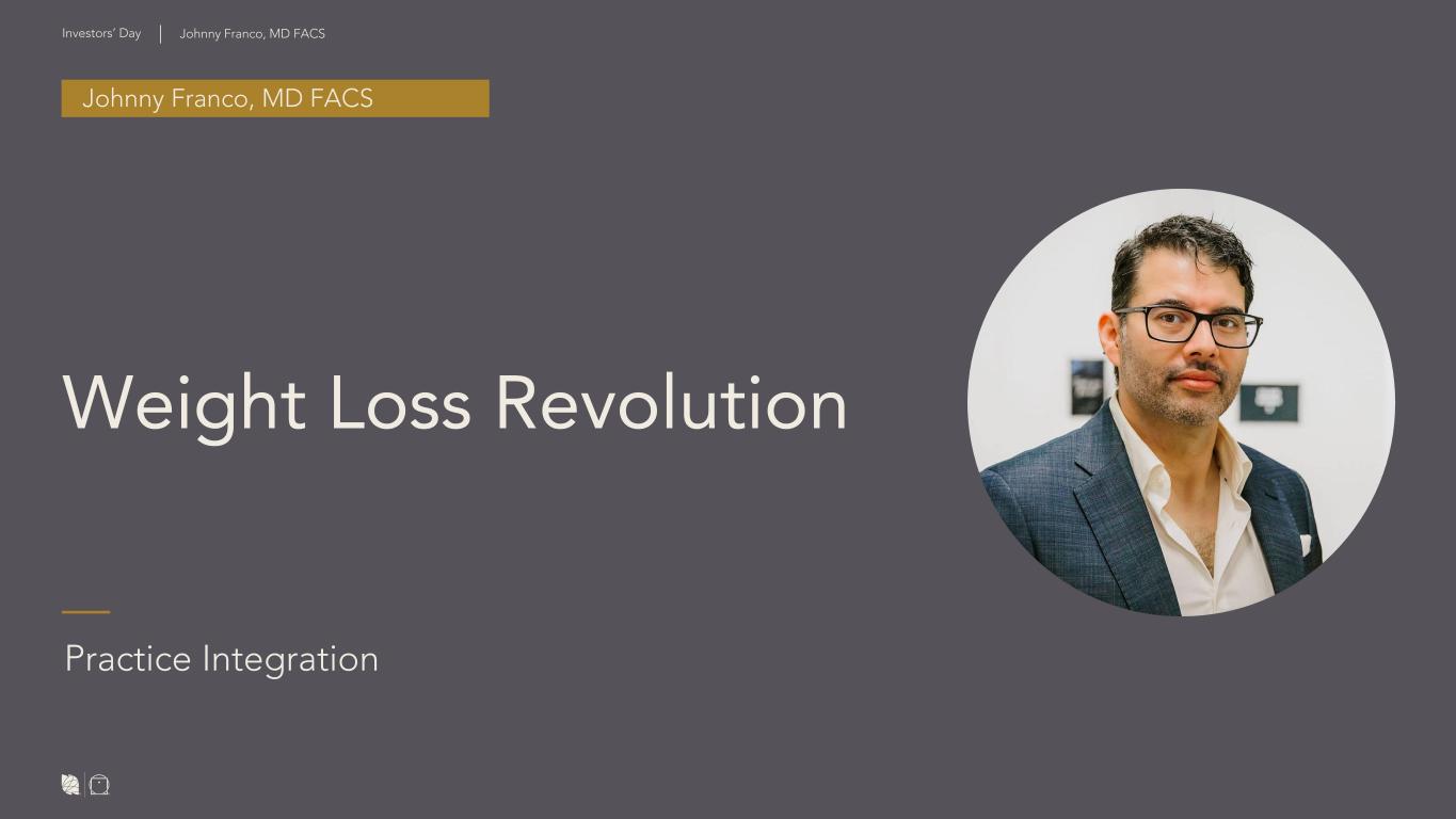 Weight Loss Revolution Practice Integration Johnny Franco, MD FACS Johnny Franco, MD FACSInvestors’ Day