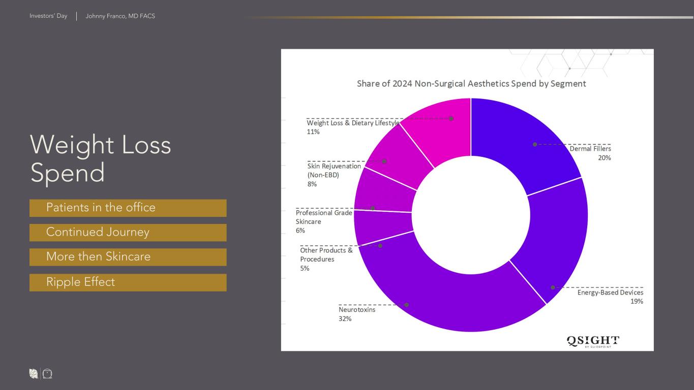 Weight Loss Spend Patients in the office Continued Journey More then Skincare Ripple Effect Johnny Franco, MD FACSInvestors’ Day