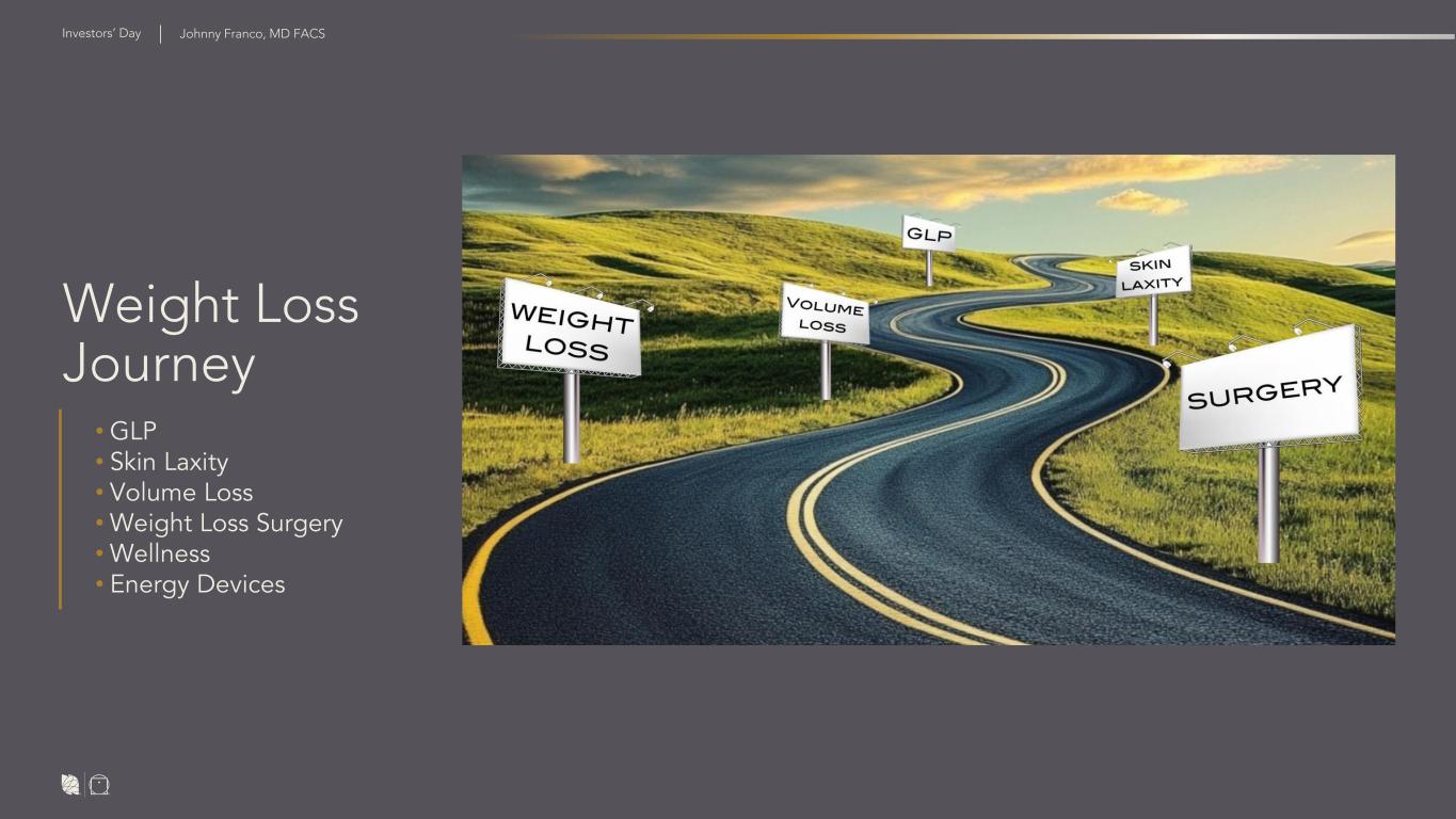 Weight Loss Journey • GLP • Skin Laxity • Volume Loss • Weight Loss Surgery • Wellness • Energy Devices Johnny Franco, MD FACSInvestors’ Day