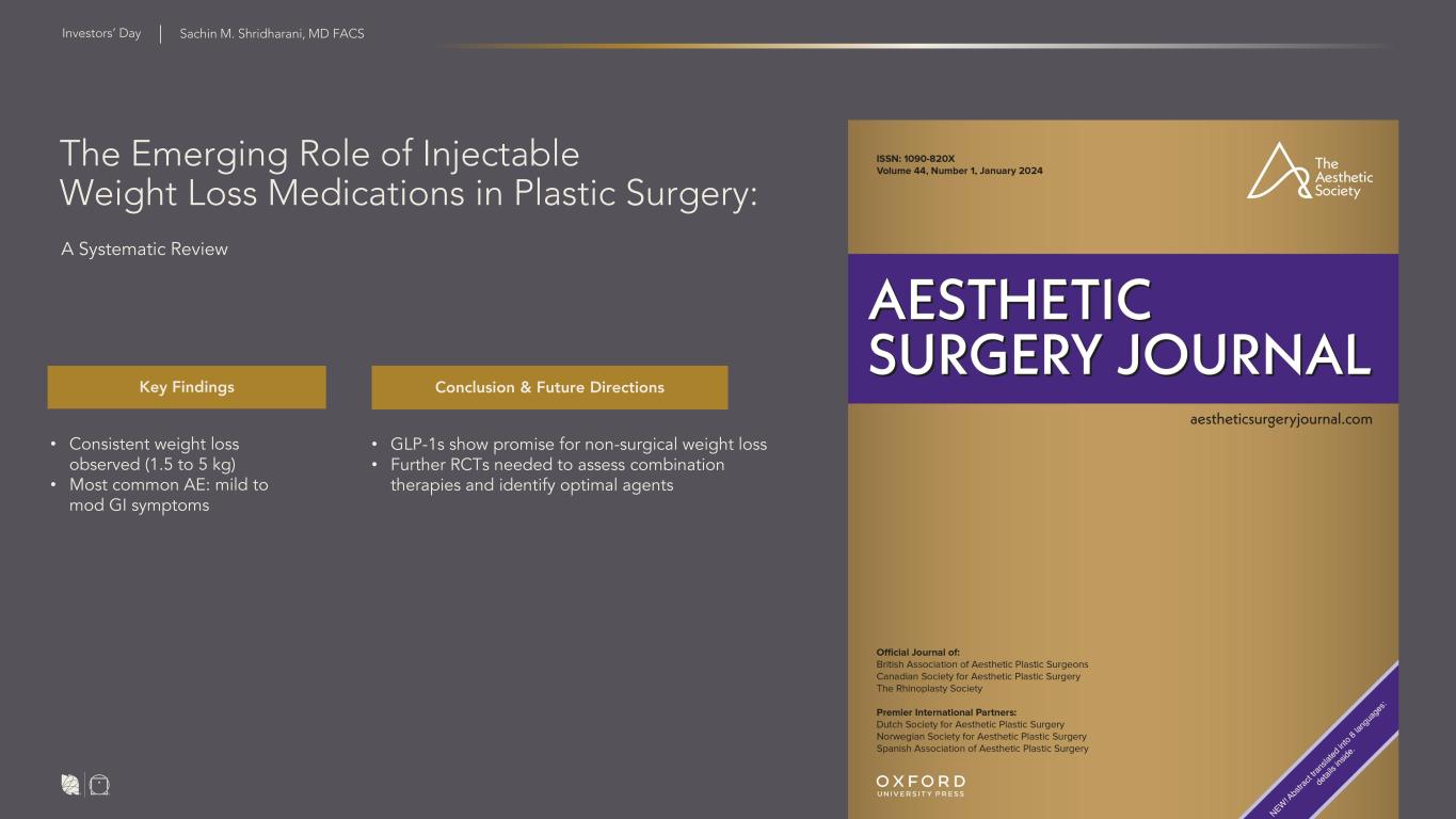 Sachin M. Shridharani, MD FACS Glp-1S & Impacts On Plastic Surgery Sachin M. Shridharani, MD FACSInvestors’ Day