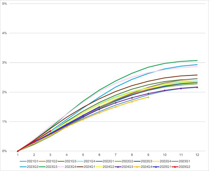 The following chart shows the historical cumulative 30-day plus past due delinquency rates by loan origination vintage for loan products facilitated through the Company’s platform in China’s Mainland as of September 30, 2025. Loans facilitated under the capital-light model, for which the Company does not bear principal risk, are excluded from the chart.