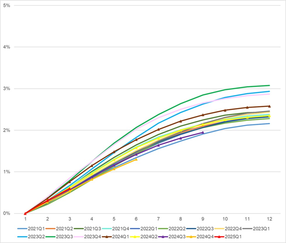 The following chart shows the historical cumulative 30-day plus past due delinquency rates by loan origination vintage for loan products facilitated through the Company’s platform in China’s Mainland as of June 30, 2025. Loans facilitated under the capital-light model, for which the Company does not bear principal risk, are excluded from the chart.