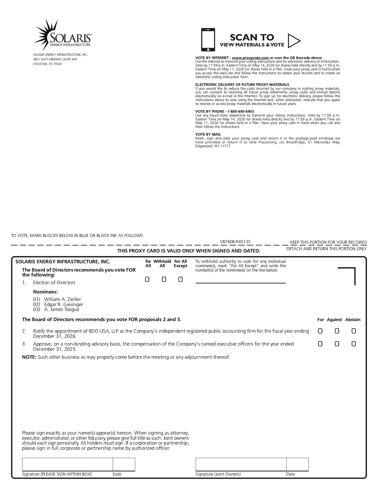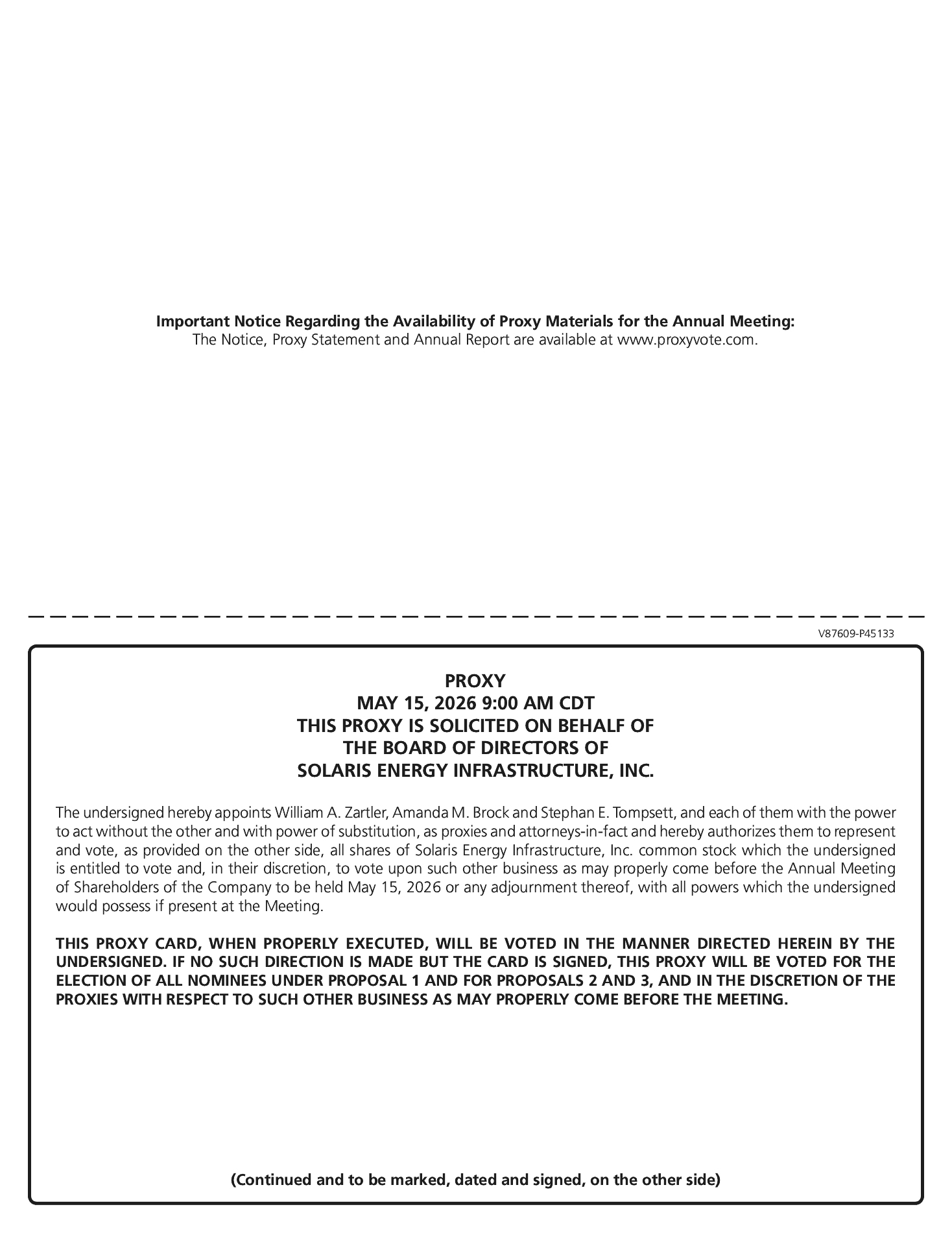 On July 9, 2024, we entered into a contribution agreement (the “Contribution Agreement”), with Solaris LLC, John A. Johnson, an individual resident of the State of Florida, John Tuma, an individual resident of the State of Texas, J Turbines, Inc., a Delaware corporation (“J Turbines”) and KTR Management Company, LLC, a Texas limited liability company (“KTR” and, together with J Turbines, the “Contributors”), pursuant to which the Contributors agreed to contribute (the “Contribution”) all of the issued and outstanding equity interests of Mobile Energy Rentals LLC, a Texas limited liability company (“MER”) to Solaris LLC, subject to terms and conditions set forth therein (the “MER Acquisition”), which closed on September 11, 2024 (the “Closing Date”). On the Closing Date, the Contribution was consummated and Solaris LLC received 100% of the issued and outstanding equity interests of MER, with aggregate consideration for the Contribution consisting of the issuance of 16,464,778 Solaris LLC units and an equal number of shares of Class B Common Stock with the fair value of the total purchase consideration transferred as approximately $323.1 million.