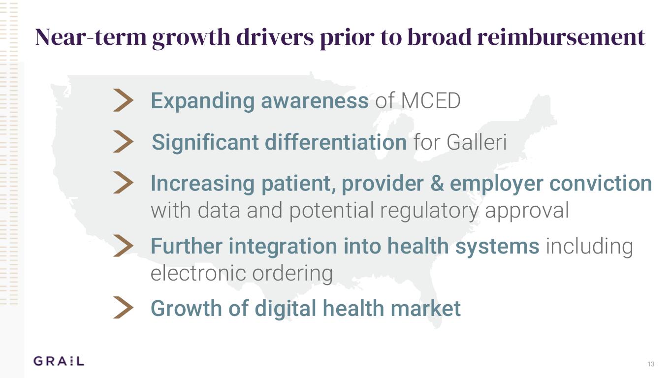 13 Near-term growth drivers prior to broad reimbursement Expanding awareness of MCED Increasing patient, provider & employer conviction with data and potential regulatory approval Further integration into health systems including electronic ordering Significant differentiation for Galleri Growth of digital health market