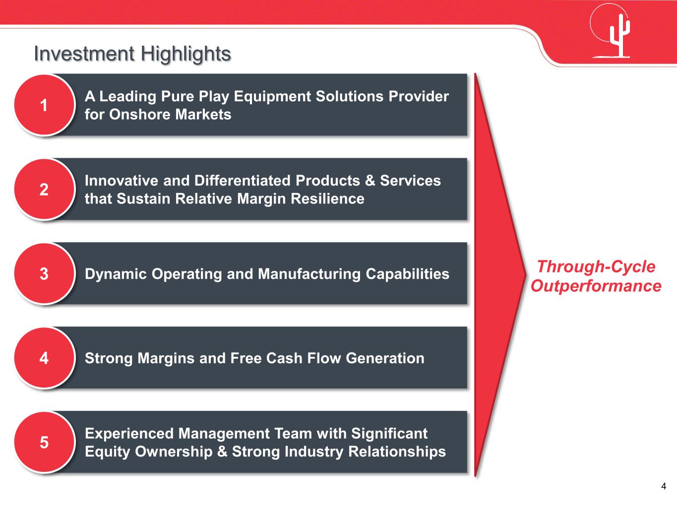 4 Experienced Management Team with Significant Equity Ownership & Strong Industry Relationships Innovative and Differentiated Products & Services that Sustain Relative Margin Resilience A Leading Pure Play Equipment Solutions Provider for Onshore Markets Strong Margins and Free Cash Flow Generation Dynamic Operating and Manufacturing Capabilities 5 4 3 2 1 Through-Cycle Outperformance Investment Highlights
