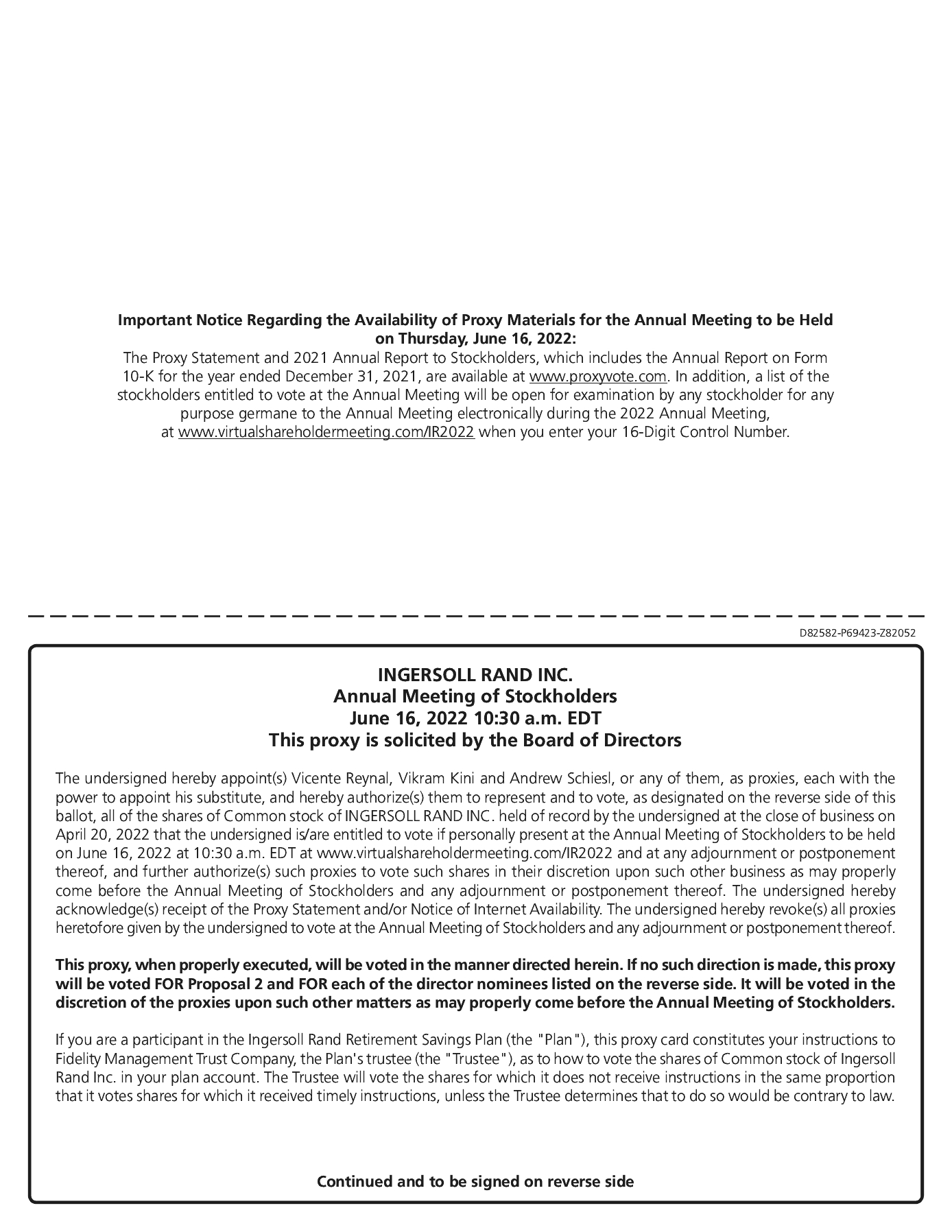 The Company entered into an offer letter with Mr. Weatherred, dated April 30, 2018 (the “Weatherred Offer Letter”), in connection with his appointment as Vice President, Gardner Denver Operating System. The Weatherred Offer Letter provides that Mr. Weatherred is entitled to receive an annual base salary of $345,000, which base salary was increased to $415,000 in March 2020, and to participate in the Company’s Management Incentive Plan with an annual target award opportunity of 50% of his annual base salary, which target was increased to 75% of salary in March 2020.