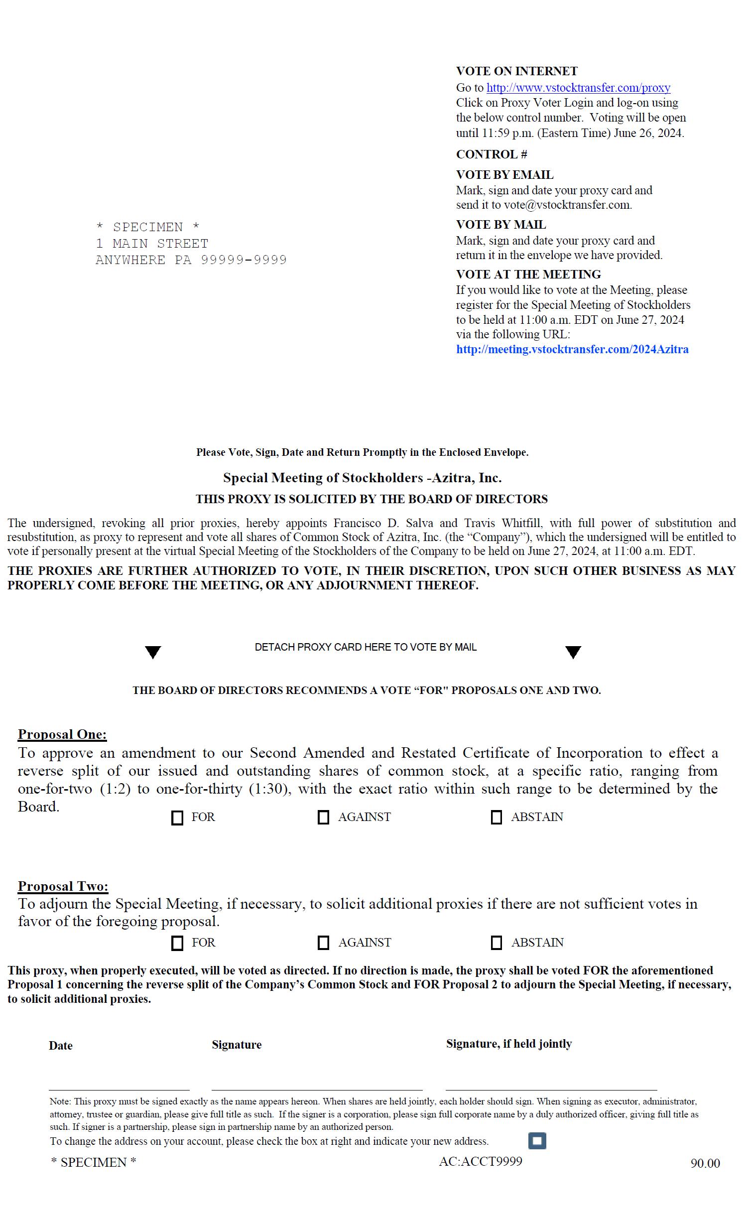 If you plan to attend the Special Meeting, you may vote online by visiting http://meeting.vstocktransfer.com/2024Azitra. Please have your 12-digit control number to join the Special Meeting.