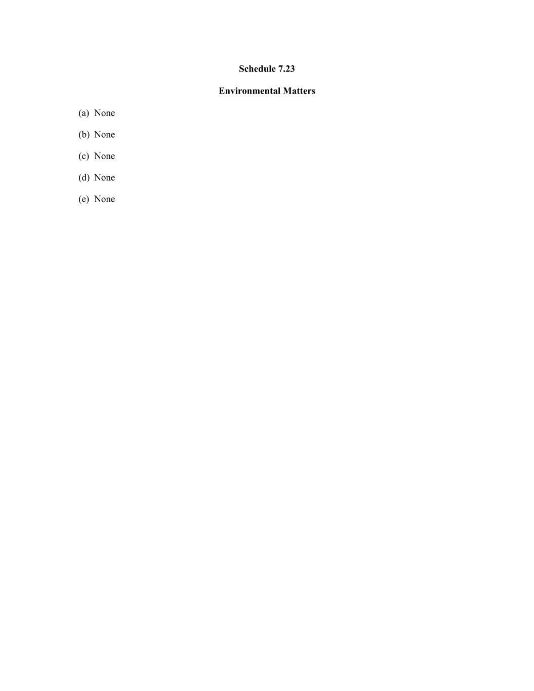 Schedule 7.23 Environmental Matters (a) None (b) None (c) None (d) None (e) None