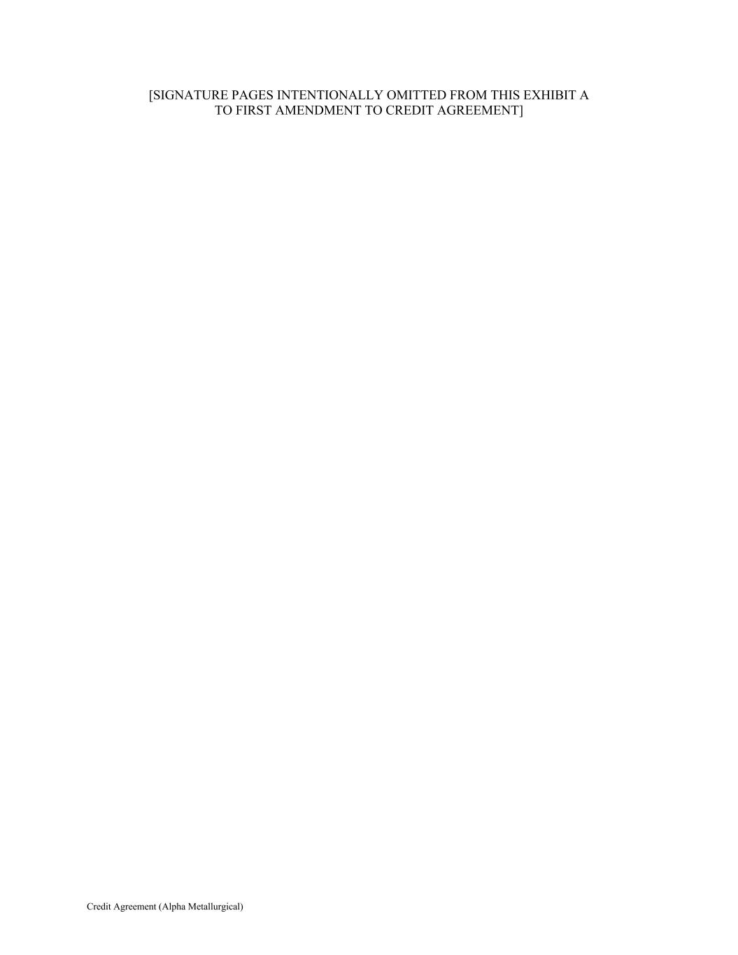 First Amendment to Credit Agreement and Security Agreement (Alpha Metallurgical) IN WITNESS WHEREOF, the parties hereto have caused this Amendment to be duly executed and delivered by their respective duly authorized officers on the date first above written. BORROWERS: ALPHA METALLURGICAL RESOURCES, INC., as “Borrower Representative” and as a “Borrower” By: /s/ J. Todd Munsey Name: J. Todd Munsey Title: Chief Financial Officer ALPHA NATURAL RESOURCES HOLDINGS, INC. By: /s/ J. Todd Munsey Name: J. Todd Munsey Title: Chief Financial Officer ALPHA METALLURGICAL COAL SALES, LLC ARACOMA COAL COMPANY, LLC BLACK CASTLE MINING COMPANY, LLC DICKENSON-RUSSELL CONTURA, LLC ELK RUN COAL COMPANY, LLC KINGSTON MINING, INC. MARFORK COAL COMPANY, LLC NICHOLAS CONTURA, LLC PARAMONT CONTURA, LLC REPUBLIC ENERGY, LLC SPARTAN MINING COMPANY, LLC By: /s/ J. Todd Munsey Name: J. Todd Munsey Title: Treasurer ALPHA METALLURGICAL RESOURCES, LLC By: /s/ J. Todd Munsey Name: J. Todd Munsey Title: President [Signatures continue on the following page.]