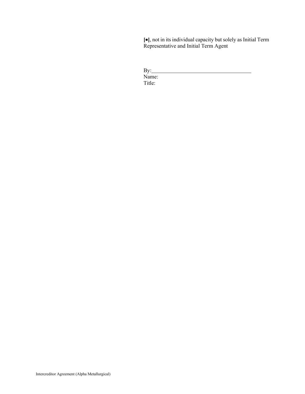 Intercreditor Agreement (Alpha Metallurgical) [], not in its individual capacity but solely as Initial Term Representative and Initial Term Agent By: Name: Title: