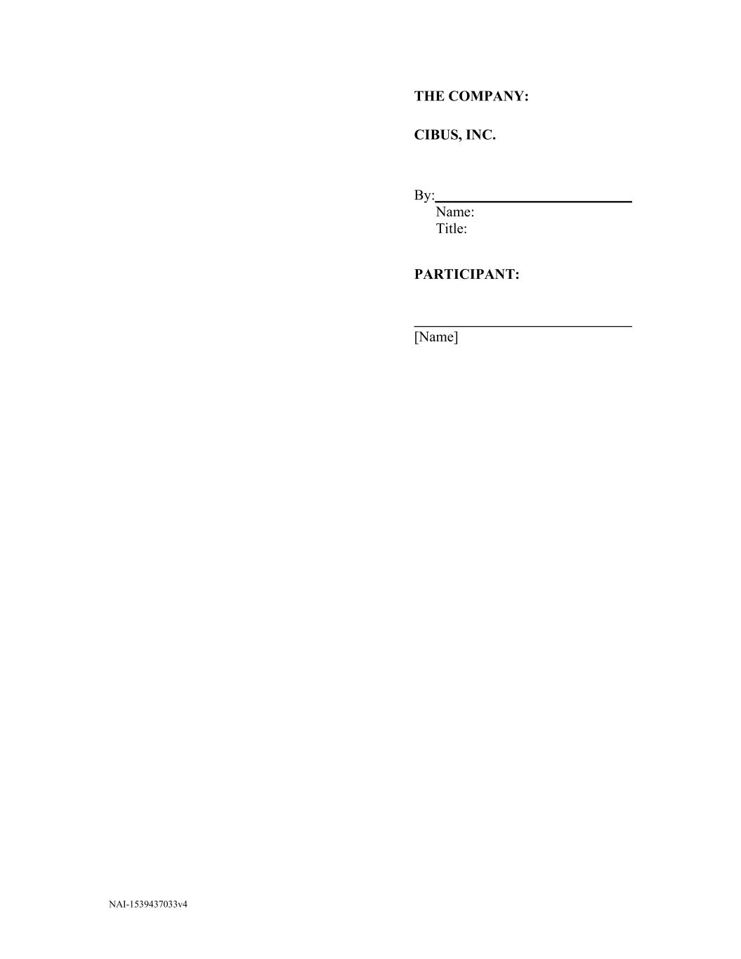 NAI-1539437033v4  THE COMPANY:   CIBUS, INC.  By:         Name:         Title:  PARTICIPANT:     [Name]
