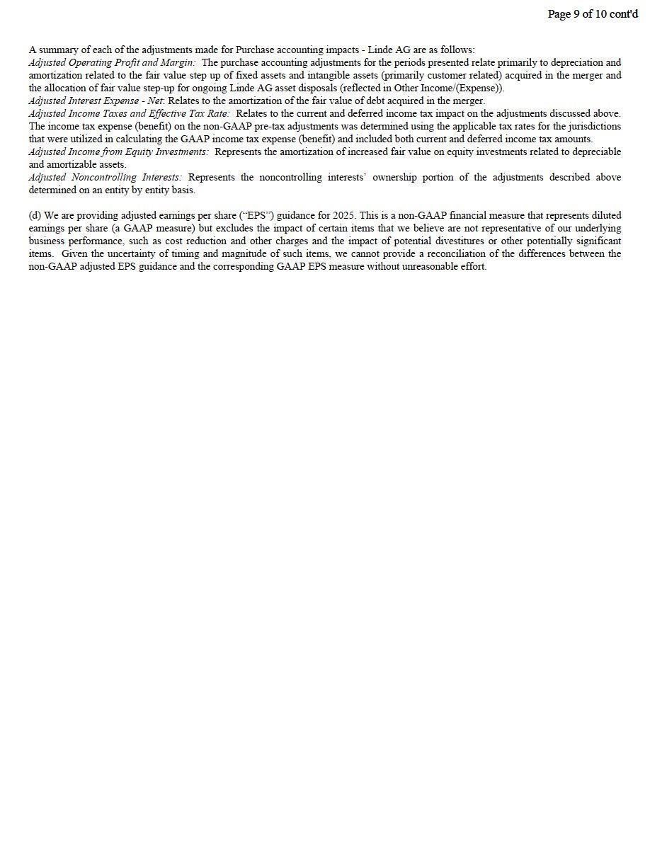 For the third quarter of 2025, Linde expects adjusted diluted earnings per share in the range of $4.10 to $4.20, up 4% to 7% versus prior-year quarter, or 3% to 6% when excluding 1% of estimated currency tailwind.