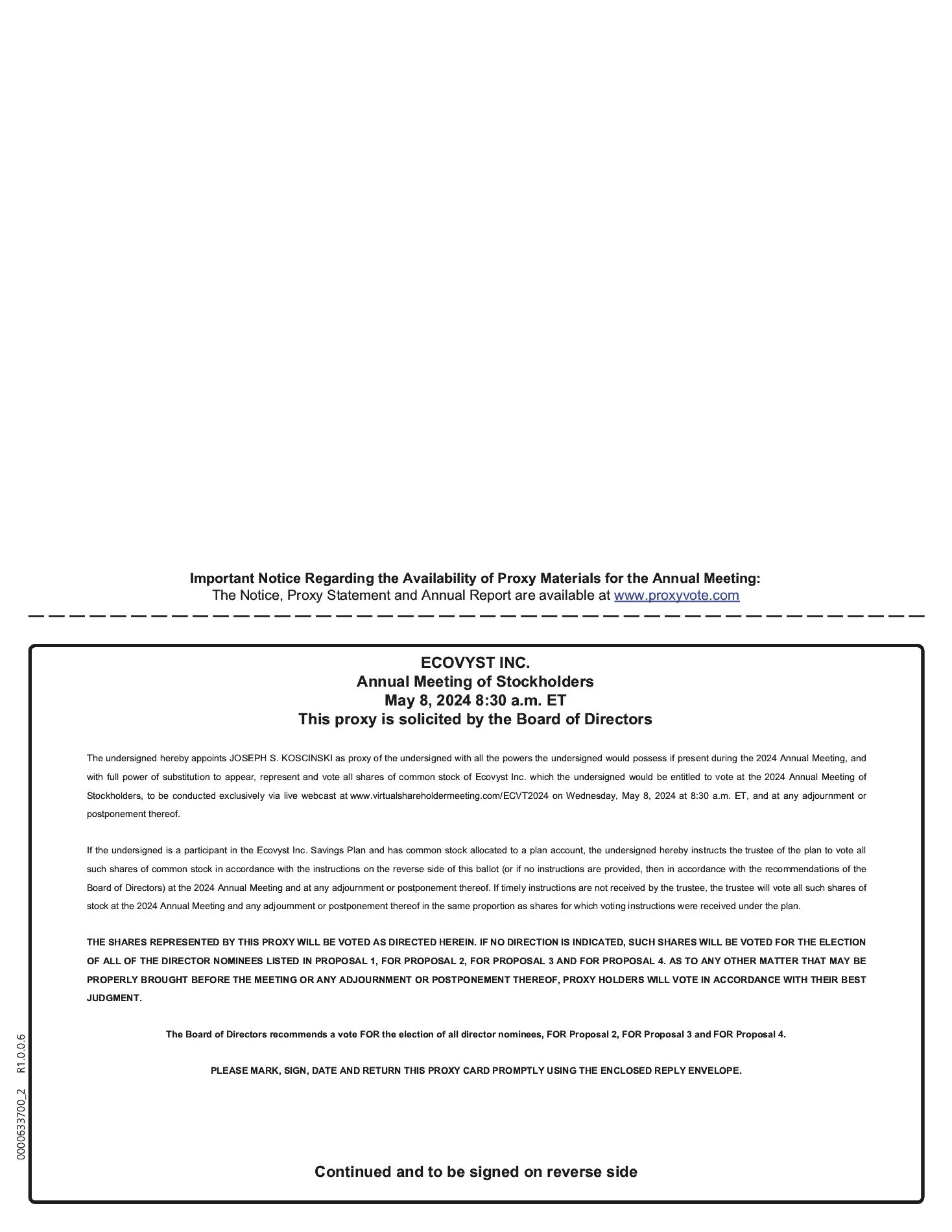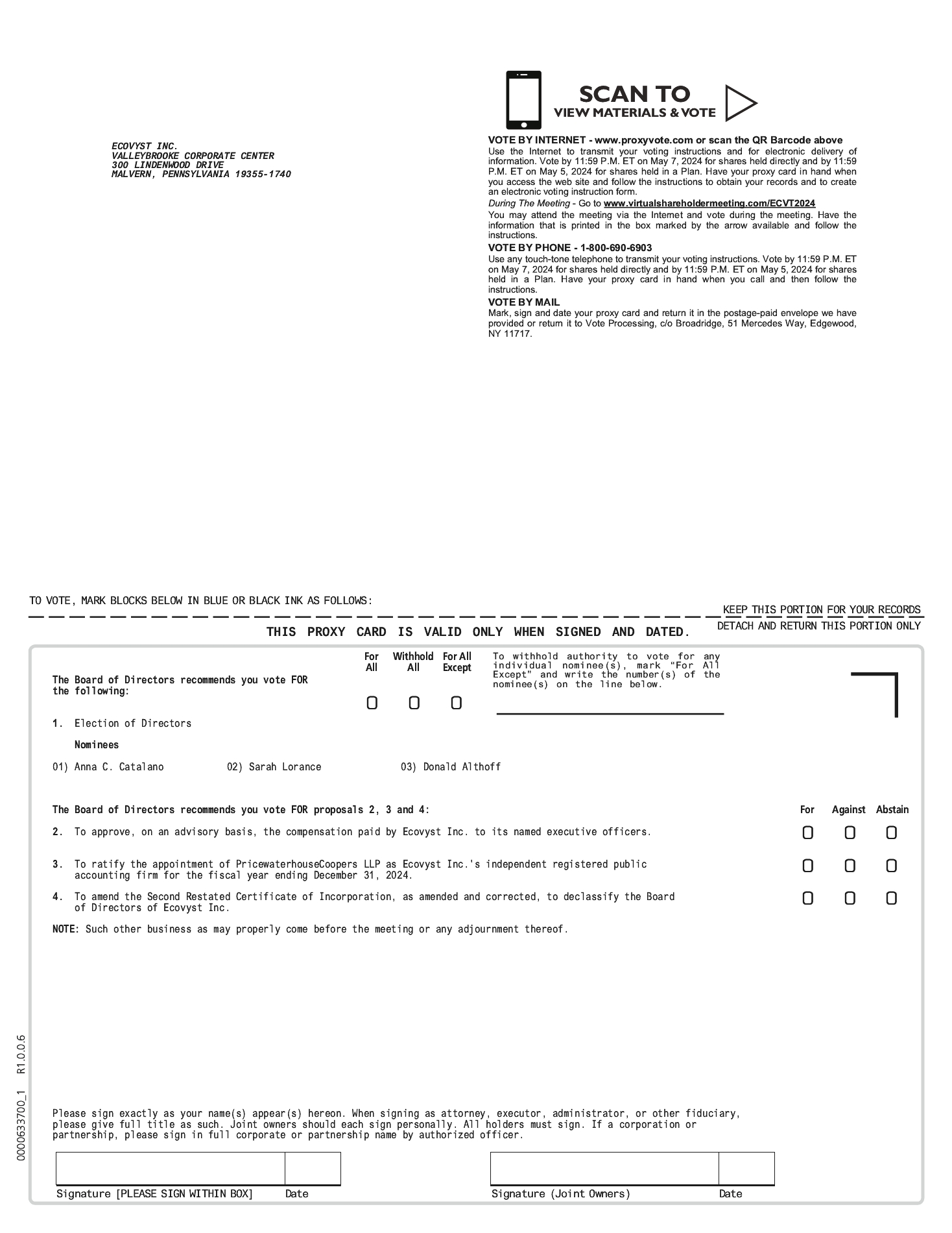 • | By attending the Annual Meeting Online. During the Annual Meeting, you may vote online by following the instructions at www.virtualshareholdermeeting.com/ECVT2024. Have your proxy card or voting instruction form available when you access the virtual meeting webpage. |