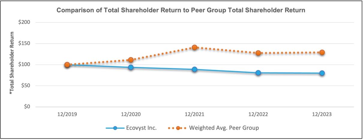 (3) | The non-PEO Named Executive Officers (“NEOs”) for 2023 and their respective titles during such year were Michael Feehan, Vice President and Chief Financial Officer; Joseph S. Koscinski, Chief Administrative Officer, Vice President, General Counsel and Secretary; George L. Vann, Jr., Vice President and President — Ecoservices; and Paul Whittleston, Vice President and President – Advanced Materials and Catalysts. The non-PEO NEOs for 2022 were Michael Feehan, Vice President and Chief Financial Officer; Joseph S. Koscinski, Vice President, General Counsel and Secretary; George L. Vann, Jr., Vice President and President — Ecoservices; Paul Whittleston, Vice President – Strategy and Business Development; and Thomas Schneberger, President of Ecovyst and President — Catalyst Technologies (who resigned effective November 29, 2022). The non-PEO NEOs for 2021 and their respective titles during such year were Thomas Schneberger, Vice President and President — Catalyst Technologies; Kurt Bitting, Vice President and President — Ecoservices; Michael Feehan, Vice President and Chief Financial Officer; Joseph S. Koscinski, Vice President, General Counsel and Secretary; Albert F. Beninati, Jr., Vice President and President — Performance Chemicals (whose employment terminated on August 2, 2021 in connection with the sale of the Performance Chemicals business); and Michael Crews, Executive Vice President and Chief Financial Officer (who retired from the Company effective September 30, 2021). The non-PEO NEOs for 2020 and their respective titles during such year were Michael Crews, Executive Vice President and Chief Financial Officer; Ray Kolberg, Vice President and President — Catalysts (who resigned effective March 15, 2021); Joseph S. Koscinski, Vice President, General Counsel and Secretary; Albert F. Beninati, Jr., Vice President and President, Performance Chemicals; and Scott Randolph, Vice President and President, Performance Materials (whose employment terminated on December 14, 2020 in connection with the sale of the Performance Materials business). |