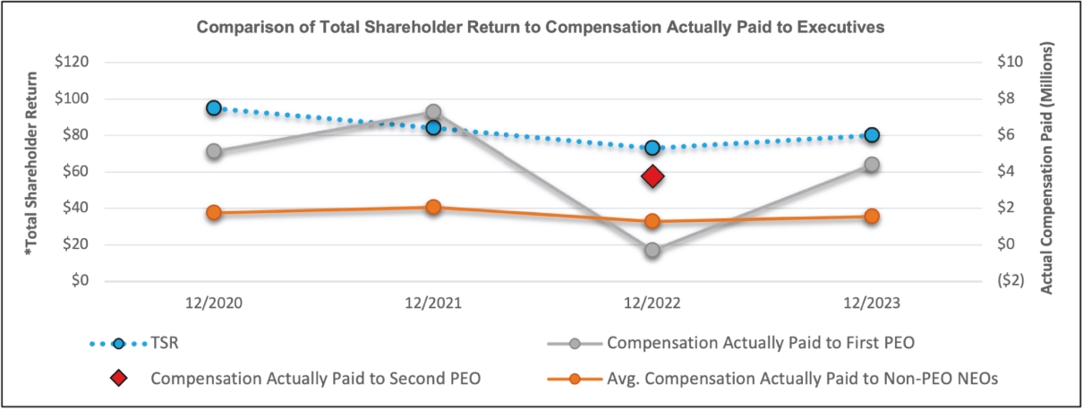 (4) | For purposes of calculating the cumulative total shareholder return, the measurement period is the market close on the last trading day before fiscal year 2020, through and including the end of the fiscal year for which cumulative total shareholder return is being calculated. TSR and peer group TSR has been calculated based on a fixed investment of one hundred dollars at the beginning of the measurement point. TSR Values for 2022, 2021 and 2020 have been revised from those shown in the first Pay-Versus-Performance table in our Definitive Proxy Statement filed in 2023 to reflect a correction in the calculation of TSR. |