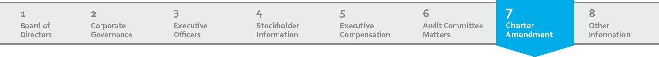 • | To amend the Second Restated Certificate of Incorporation, as amended and corrected (the “Charter”), to declassify the Board of Directors (the “Board”) of the Company (the “Charter Amendment”). |