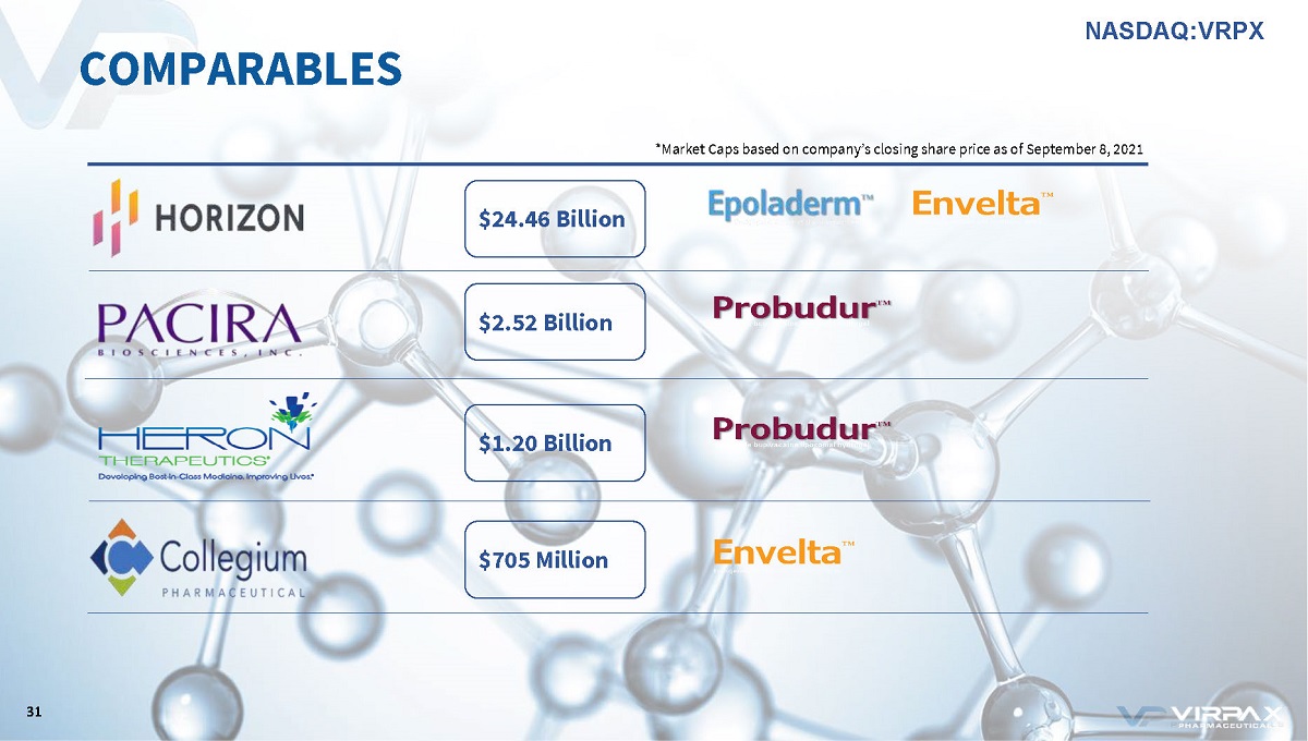 COMPARABLES *Market Caps based on company’s closing share price as of September 8, 2021 $705 Million $1.20 Billion $24.46 Billion $2.52 Billion 31 NASDAQ:VRPX