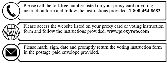 Your vote is very important. Please vote your shares today via the Internet or by telephone in accordance with the instructions below. Alternatively, please mark, sign, date and mail your proxy card or voting instruction form in the postage-paid envelope provided.