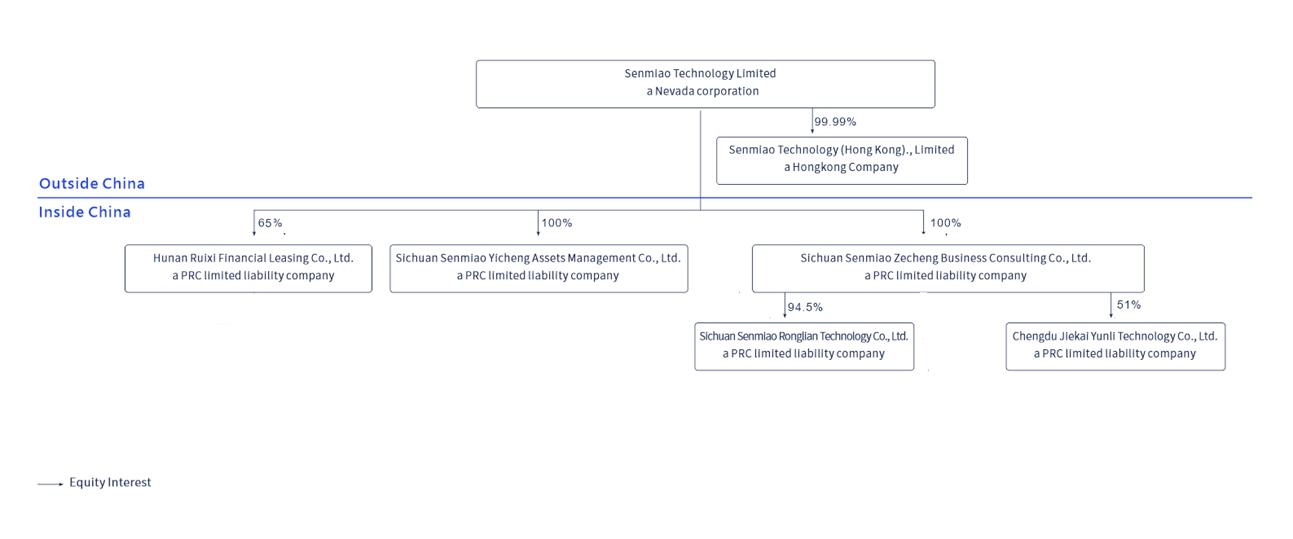 | ● | “Sichuan Senmiao” refers to Sichuan Senmiao Ronglian Technology Co., Ltd., a PRC limited liability company, the majority owned subsidiary of Senmiao Consulting; |