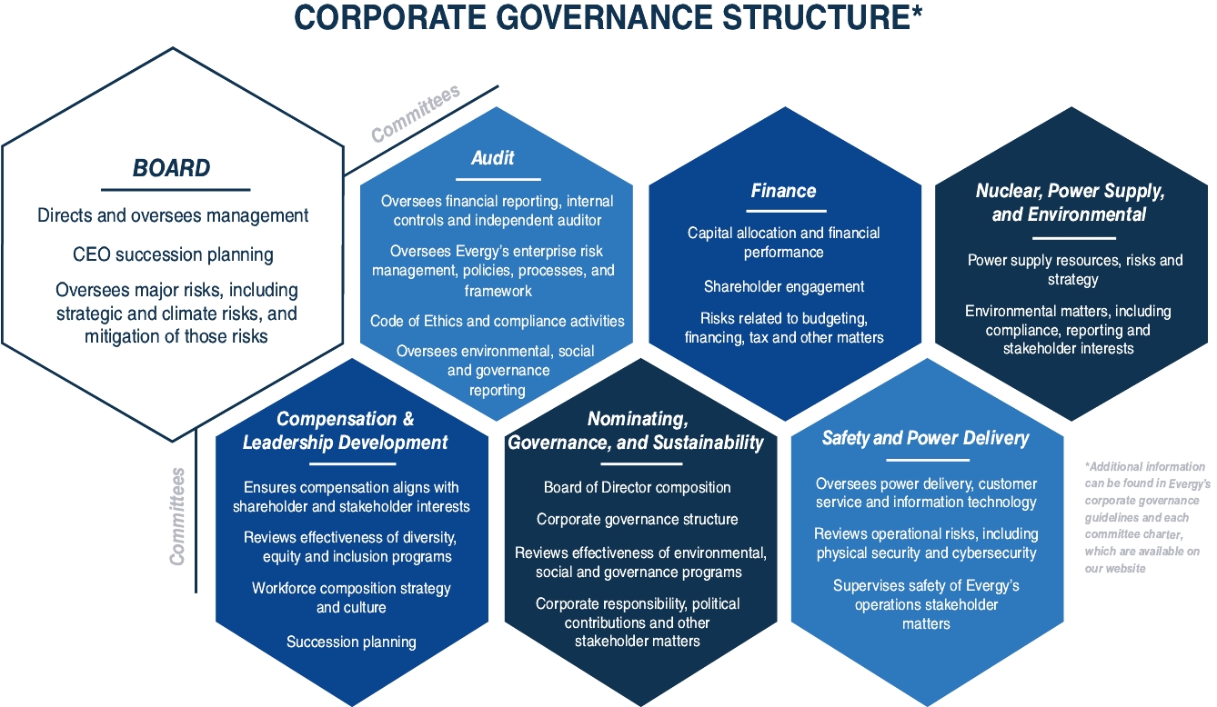 In connection with the safe harbor provisions of the Private Securities Litigation Reform Act of 1995, Evergy, Inc., Evergy Kansas Central, Inc. and Evergy Metro, Inc. (collectively the “Evergy Companies”) are providing a number of risks, uncertainties and other factors that could cause actual results to differ from the forward-looking information. These risks, uncertainties and other factors include, but are not limited to: economic and weather conditions and any impact on sales, prices and costs; changes in business strategy or operations; the impact of federal, state and local political, legislative, judicial and regulatory actions or developments, including deregulation, re-regulation, securitization and restructuring of the electric utility industry; decisions of regulators regarding, among other things, customer rates and the prudency of operational decisions such as capital expenditures and asset retirements; changes in applicable laws, regulations, rules, principles or practices, or the interpretations thereof, governing tax, accounting and environmental matters, including air and water quality and waste management and disposal; the impact of climate change, including increased frequency and severity of significant weather events and the extent to which counterparties are willing to do business with, finance the operations of or purchase energy from the Evergy Companies due to the fact that the Evergy Companies operate coal-fired generation; prices and availability of electricity and natural gas in wholesale markets; market perception of the energy industry and the Evergy Companies; the impact of future Coronavirus (COVID-19) variants on, among other things, sales, results of operations, financial position, liquidity and cash flows, and also on operational issues, such as supply chain issues and the availability and ability of the Evergy Companies' employees and suppliers to perform the functions that are necessary to operate the Evergy Companies; changes in the energy trading markets in which the Evergy Companies participate, including retroactive repricing of transactions by regional transmission organizations (RTO) and independent system operators; financial market conditions and performance; current disruptions in the banking industry, including changes in interest rates and credit spreads and in availability and cost of capital and the effects on derivatives and hedges, nuclear decommissioning trust and pension plan assets and costs; impairments of long-lived assets or goodwill; credit ratings; inflation rates; effectiveness of risk management policies and procedures and the ability of counterparties to satisfy their contractual commitments; impact of physical and cybersecurity breaches, criminal activity, terrorist attacks, acts of war and other disruptions to the Evergy Companies' facilities or information technology infrastructure or the facilities and infrastructure of third-party service providers on which the Evergy Companies rely; impact of the Russian, Ukrainian conflict on the global energy market; ability to carry out marketing and sales plans; cost, availability, quality and timely provision of equipment, supplies, labor and fuel; ability to achieve generation goals and the occurrence and duration of planned and unplanned generation outages; delays and cost increases of generation, transmission, distribution or other projects; the Evergy Companies’ ability to manage their transmission and distribution development plans and transmission joint ventures; the inherent risks associated with the ownership and operation of a nuclear facility, including environmental, health, safety, regulatory and financial risks; workforce risks, including those related to the Evergy Companies' ability to attract and retain qualified personnel, maintain satisfactory relationships with their labor unions and manage costs of, or changes in, wages, retirement, health care and other benefits; disruption, costs and uncertainties caused by or related to the actions of individuals or entities, such as activist shareholders or special interest groups, that seek to influence Evergy’s strategic plan, financial results or operations; the impact of changing expectations and demands of the Evergy Companies' customers, regulators, investors and stakeholders, including heightened emphasis on environmental, social and governance concerns; the possibility that strategic initiatives, including mergers, acquisitions and divestitures, and long-term financial plans, may not create the value that they are expected to achieve in a timely manner or at all; difficulties in maintaining relationships with customers, employees, regulators or suppliers; and other risks and uncertainties.