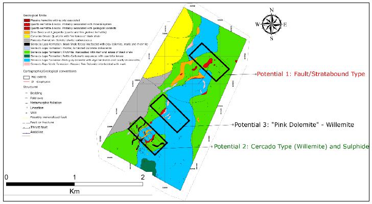 McGladry, A.J. 2014, The Integration of Physical Rock Properties, Mineralogy, and Geochemistry for the Exploration of Large Hypogene Zinc Silicate Deposits: a Case Study of the Vazante Zinc Deposits, Minas Gerais, Brazil: M. Sc. Thesis, Queens University, Canada, p. 177.