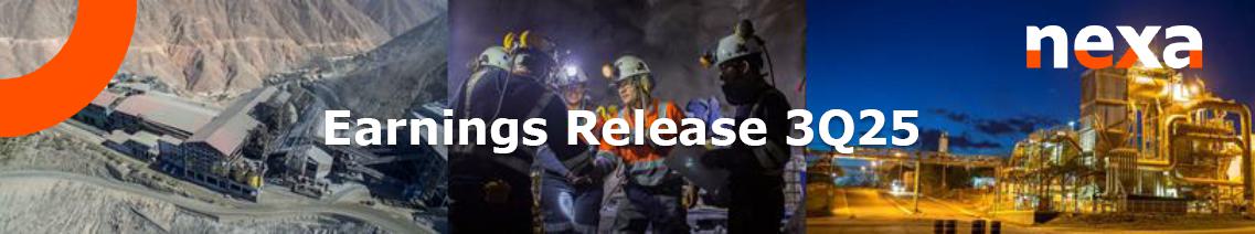Luxembourg, October 30, 2025 – Nexa Resources S.A. (“Nexa Resources”, “Nexa”, or the “Company”) announces today its results for the three and nine-month periods ended on September 30, 2025.