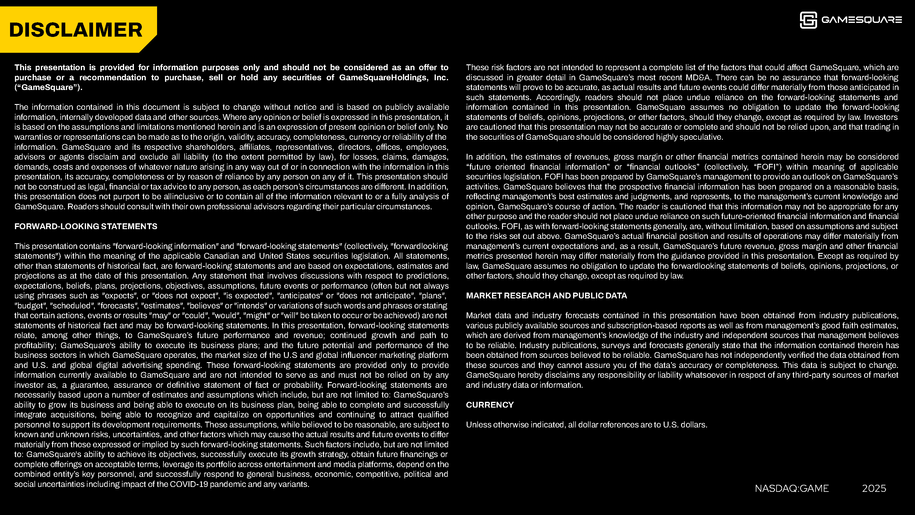 GameSquare Holdings, Inc. Script of Special Investor Call