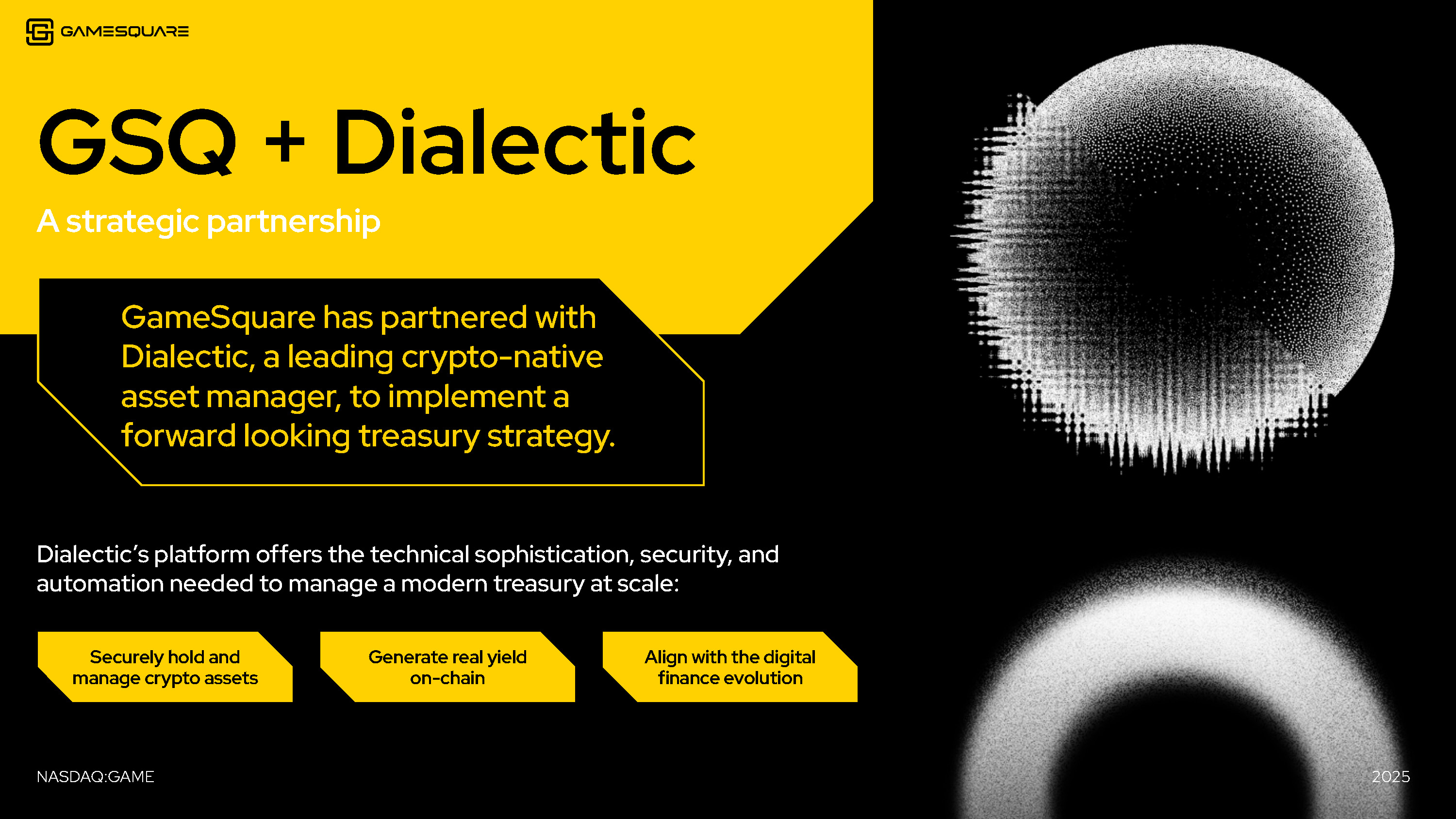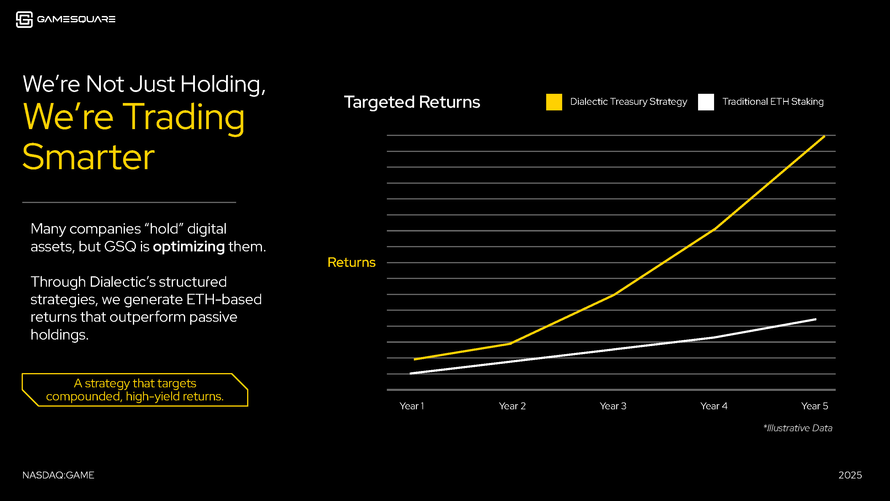 GameSquare specifically focused on Ethereum system assets. When you look at crypto treasuries, many companies are focused on Bitcoin and there’s really only one use case or Bitcoin, which is holding. Now within Ethereum strategies, you see more productive use cases. where you can put your capital to work, like earning somewhat staking and now higher yield opportunities with the GameSquare and Dialectic partnership.