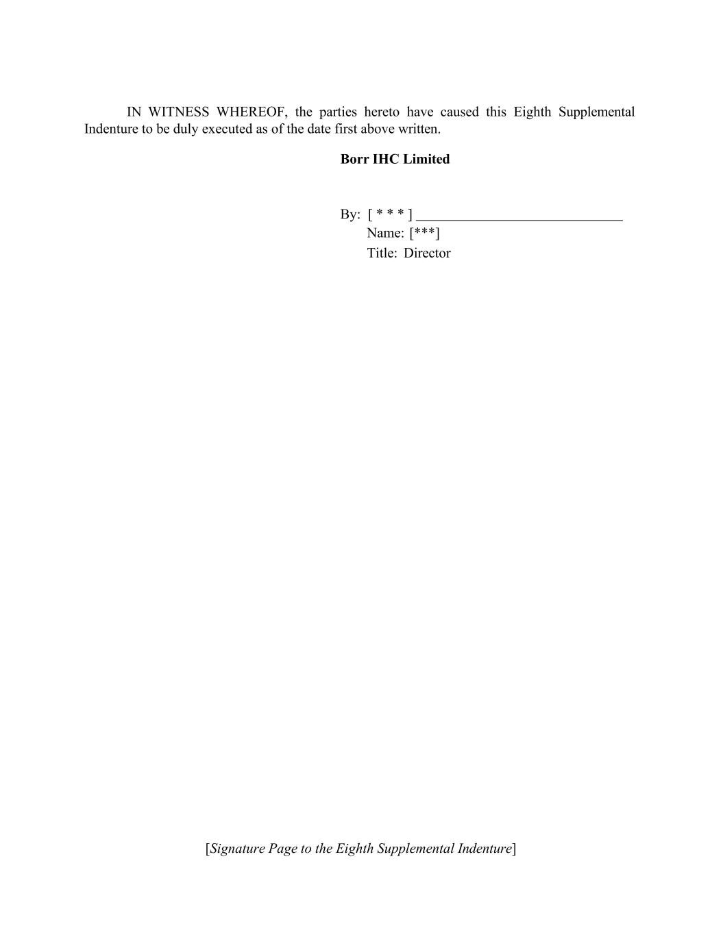 [Signature Page to the Eighth Supplemental Indenture] IN WITNESS WHEREOF, the parties hereto have caused this Eighth Supplemental Indenture to be duly executed as of the date first above written. Borr IHC Limited By: [ * * * ] Name: [***] Title: Director
