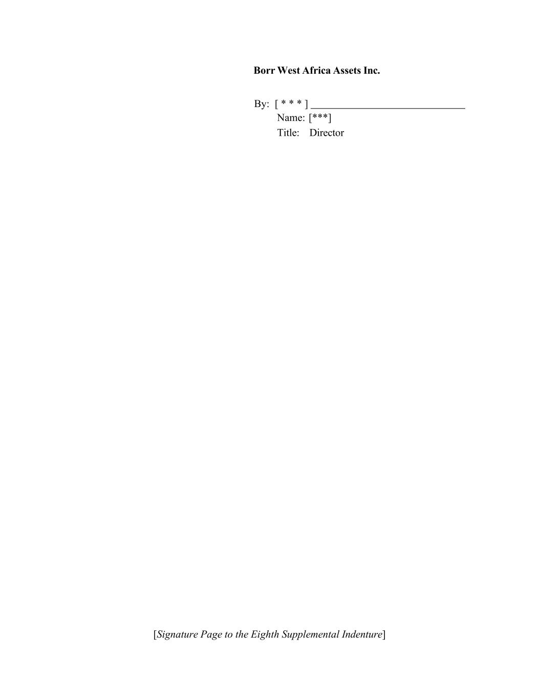 [Signature Page to the Eighth Supplemental Indenture] Borr West Africa Assets Inc. By: [ * * * ] Name: [***] Title: Director