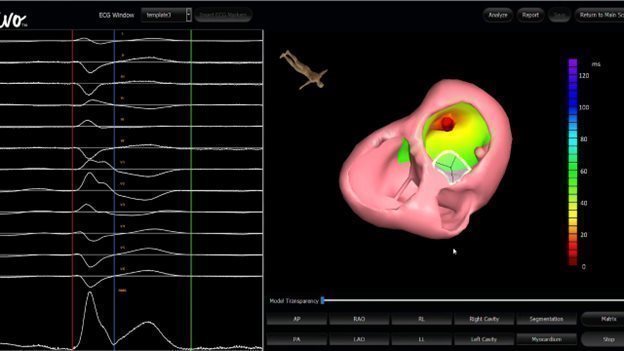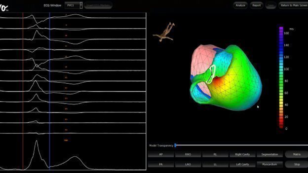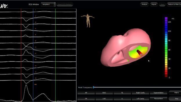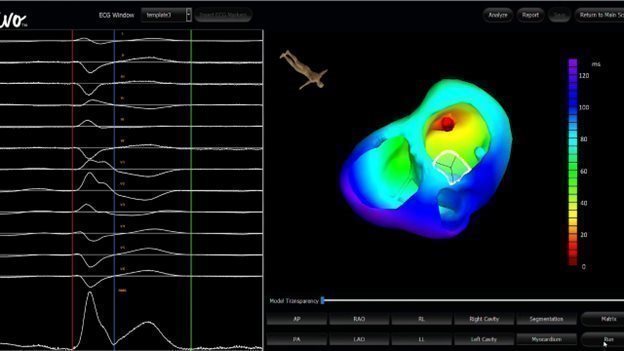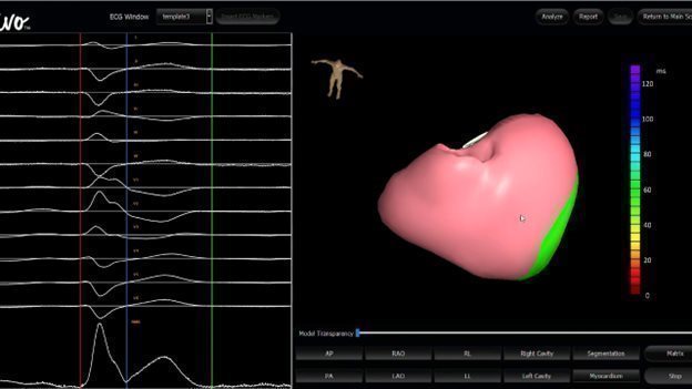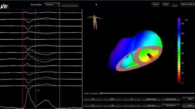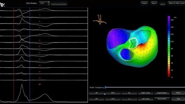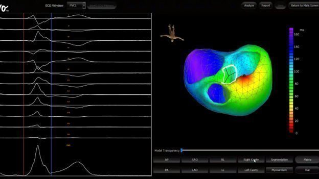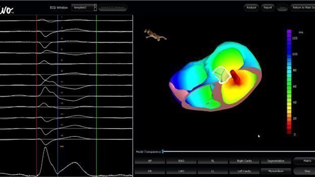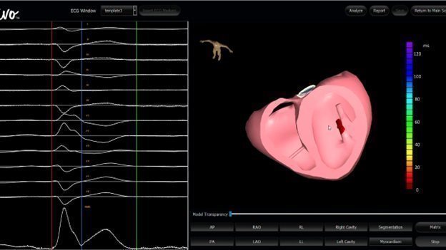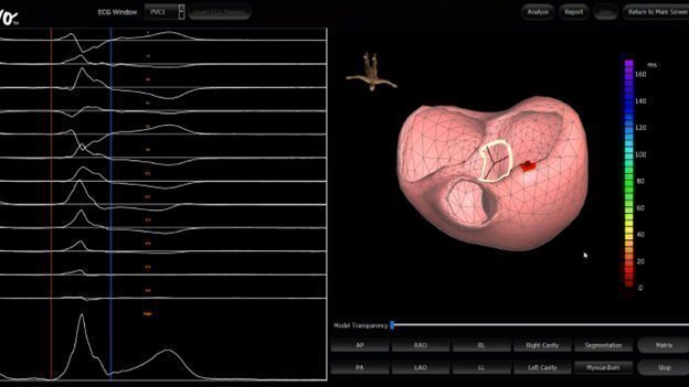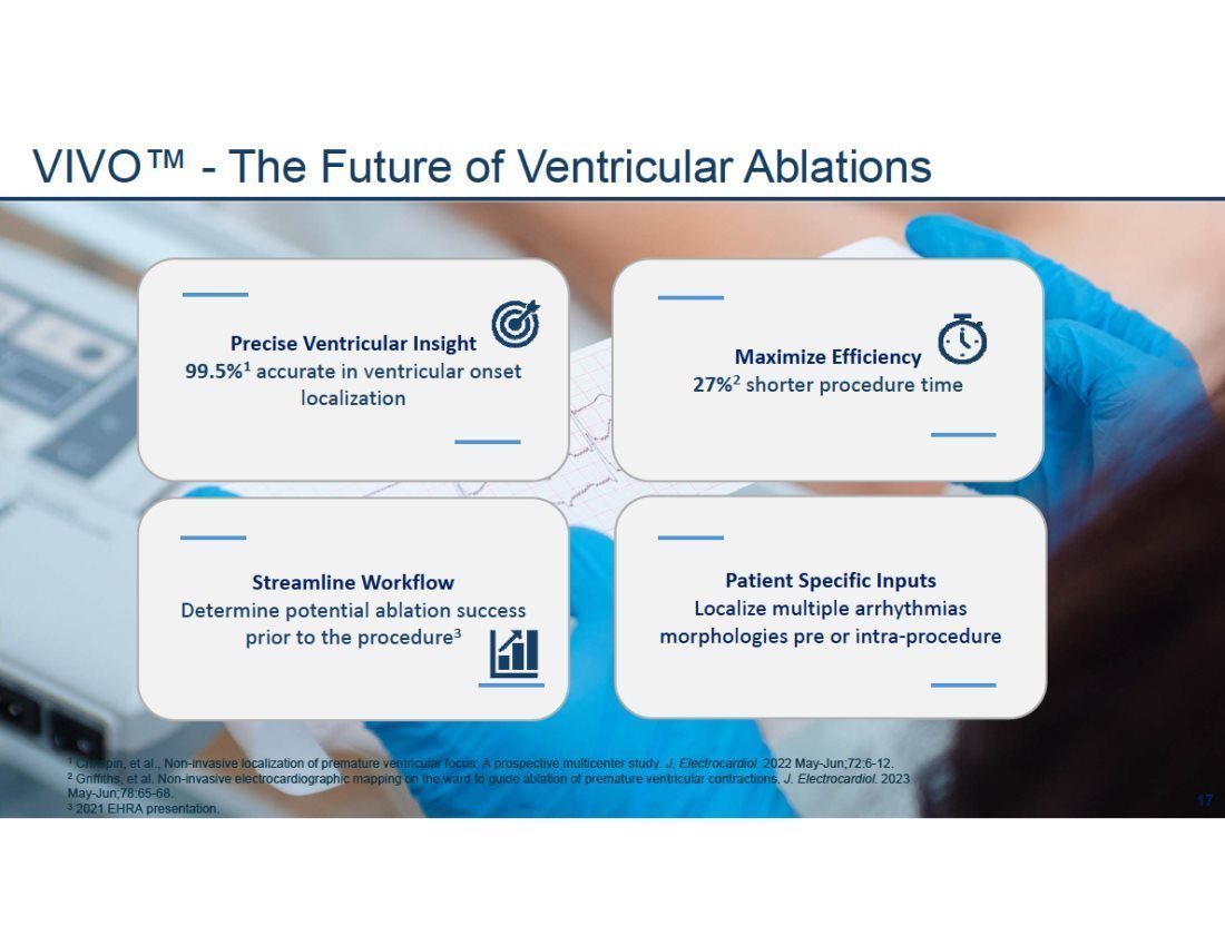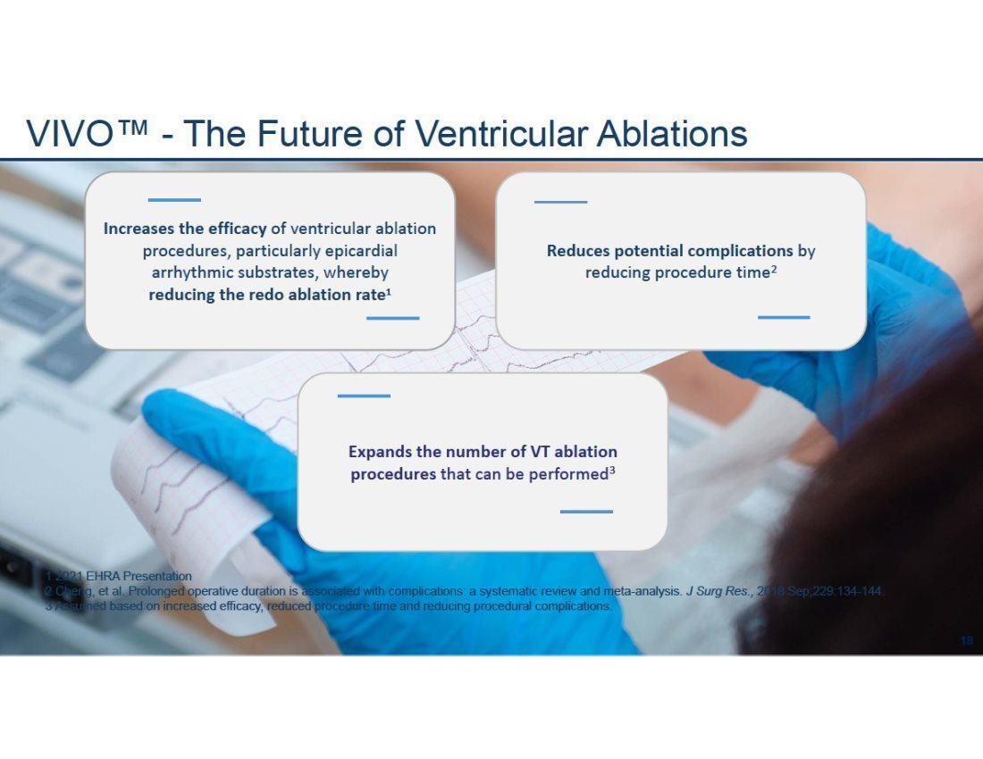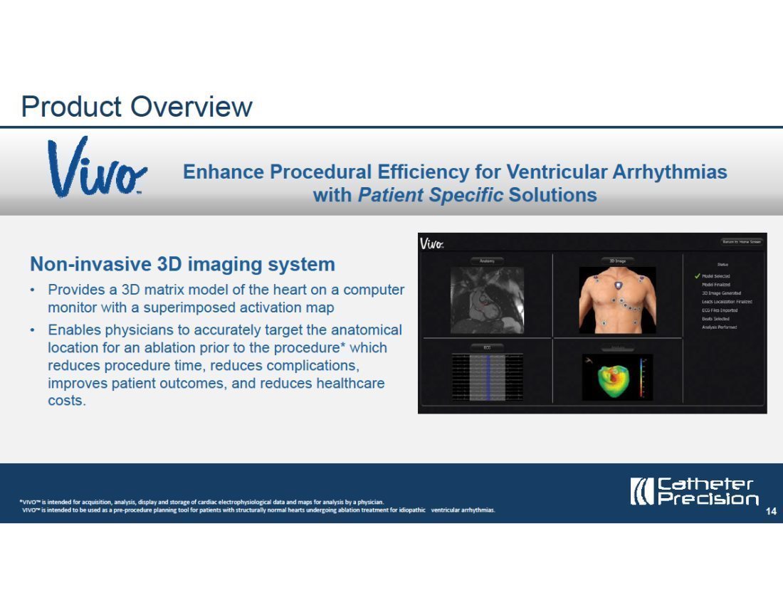 Slide 15 of the Presentation includes an embedded animation, without audio, that illustrates how VIVO works through a simulation of the user interface, including a 3D model of a patient, the patient’s heart, an EKG, and a user panel. Set forth below are representative graphic images from the embedded animation: