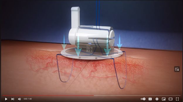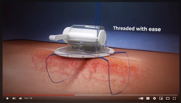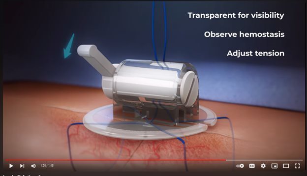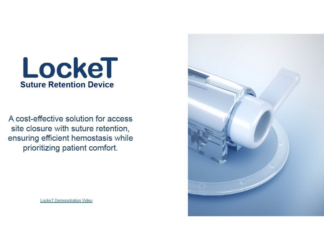 An embedded live action video, without audio, in which a surgeon demonstrates the use of LockeT during access site closure following an ablation procedure. Set forth below are representative graphic images from the embedded video: