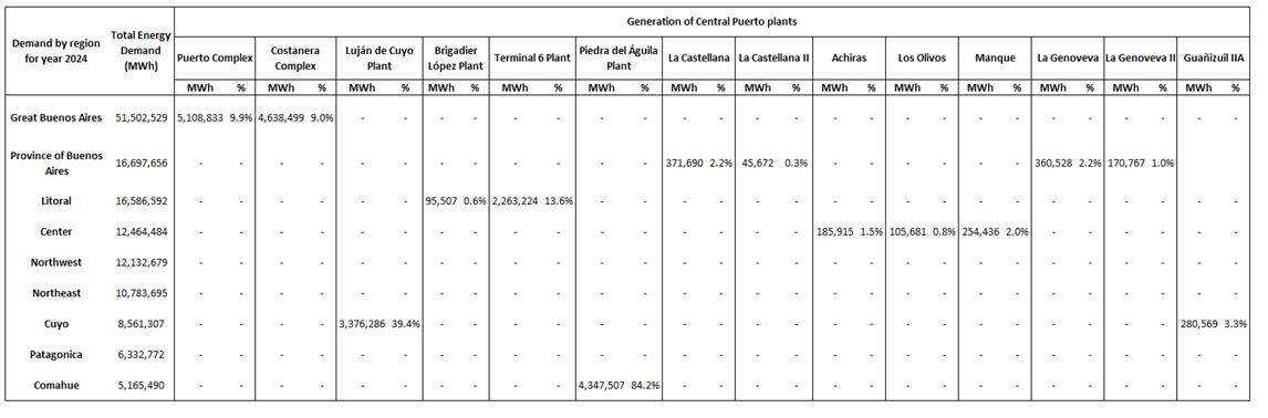 | · | “FONINVEMEM Plants” refers to the plants José de San Martín, Manuel Belgrano and Vuelta de Obligado; |
