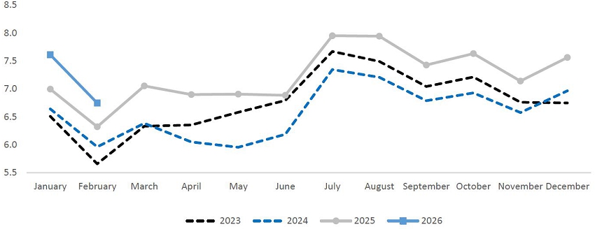 | Statistics | Feb'26 | Feb'25 | % Var. | YTD’26 | YTD’25 | % Var. | ||||||||||||||
