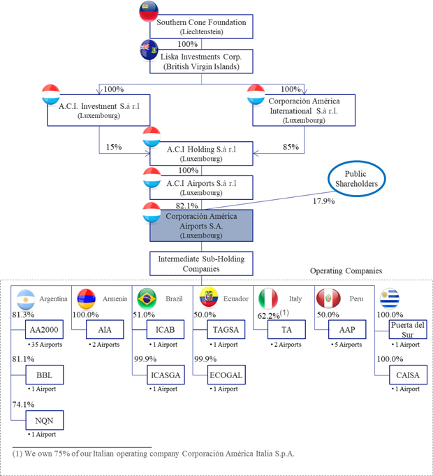 In order to facilitate our initial public offering in February 2018, during the fiscal year ended December 31, 2015, our ultimate controlling shareholder, Southern Cone Foundation, a foundation organized under the laws of Liechtenstein (“SCF” or our “Controlling Shareholder”), elected to complete a reorganization of A.C.I. Airports International S.à r.l. and various other entities and businesses under the common control of SCF in order to organize all of our airports business activities under A.C.I. Airports International S.à r.l., and to transfer all business activities not related to the airport business to other affiliates (the “Reorganization”).