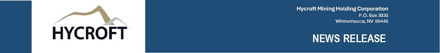 WINNEMUCCA, NV, October 28, 2025 – Hycroft Mining Holding Corporation (Nasdaq: HYMC) (“Hycroft” or the “Company”) announces third quarter 2025 results and filing of its Form 10-Q.