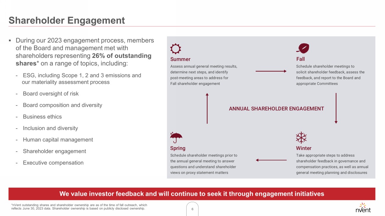 1 Spring 2024 nVent Shareholder Engagement