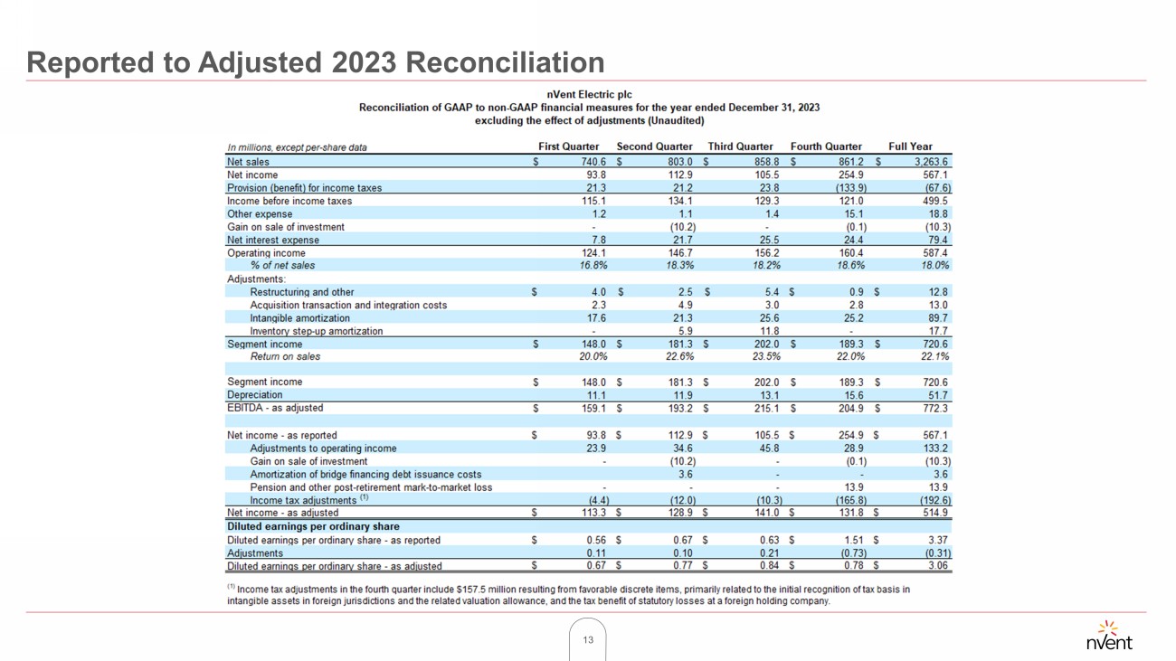 13 Reported to Adjusted 2023 Reconciliation